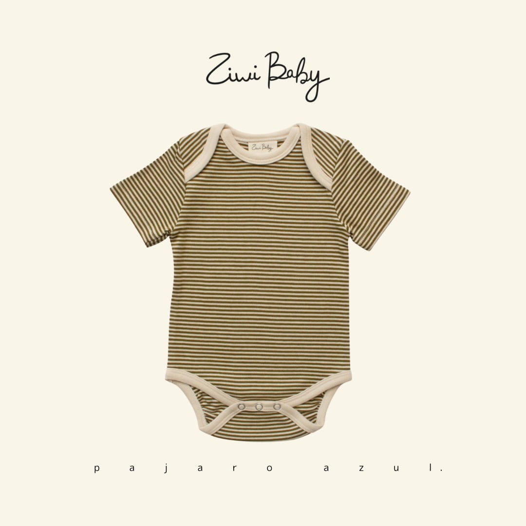 ziwi baby|Short-sleeve Bodysuit|Olive Stripe